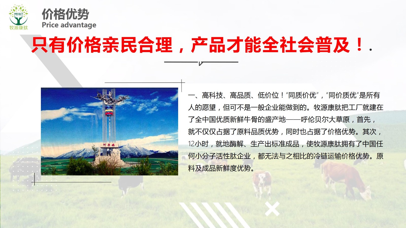 摘要:只有價(jià)格親民合理,產(chǎn)品才能全社會普及!高科技、高品質(zhì)、低價(jià)位!“同質(zhì)價(jià)優(yōu)”,“同價(jià)質(zhì)優(yōu)”是所有人的愿望,但可不是一般企業(yè)能做到的。牧源康肽把工廠就建在了全中國優(yōu)質(zhì)新鮮牛骨的盛產(chǎn)地——呼倫貝爾大草原,首先,就不僅僅占據(jù)了原料品質(zhì)優(yōu)勢,同時(shí)也占..